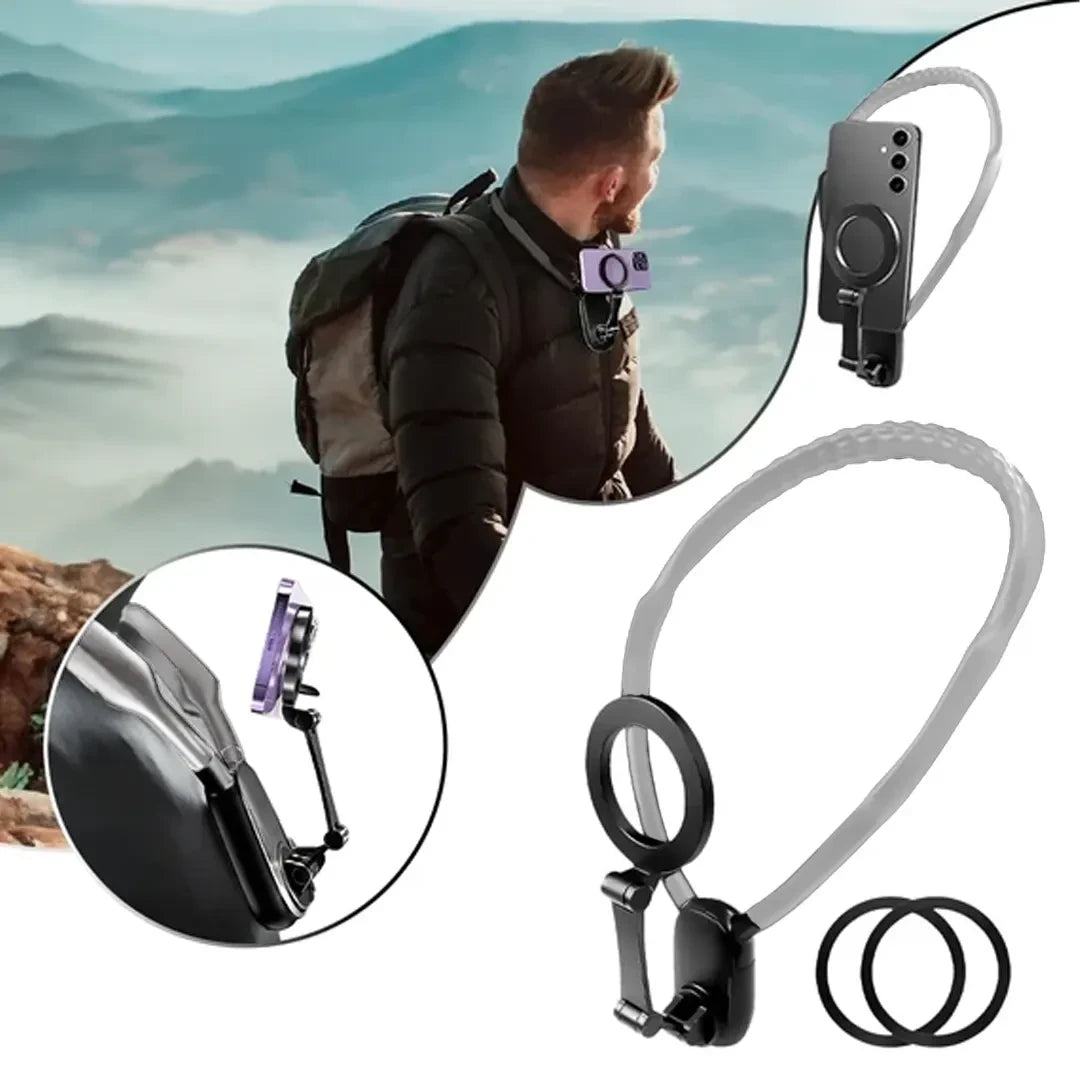 Mbajtës Telefoni Magnetik për Qafë – i Rregullueshëm, i Sigurt dhe Ideal për Vlog & Video