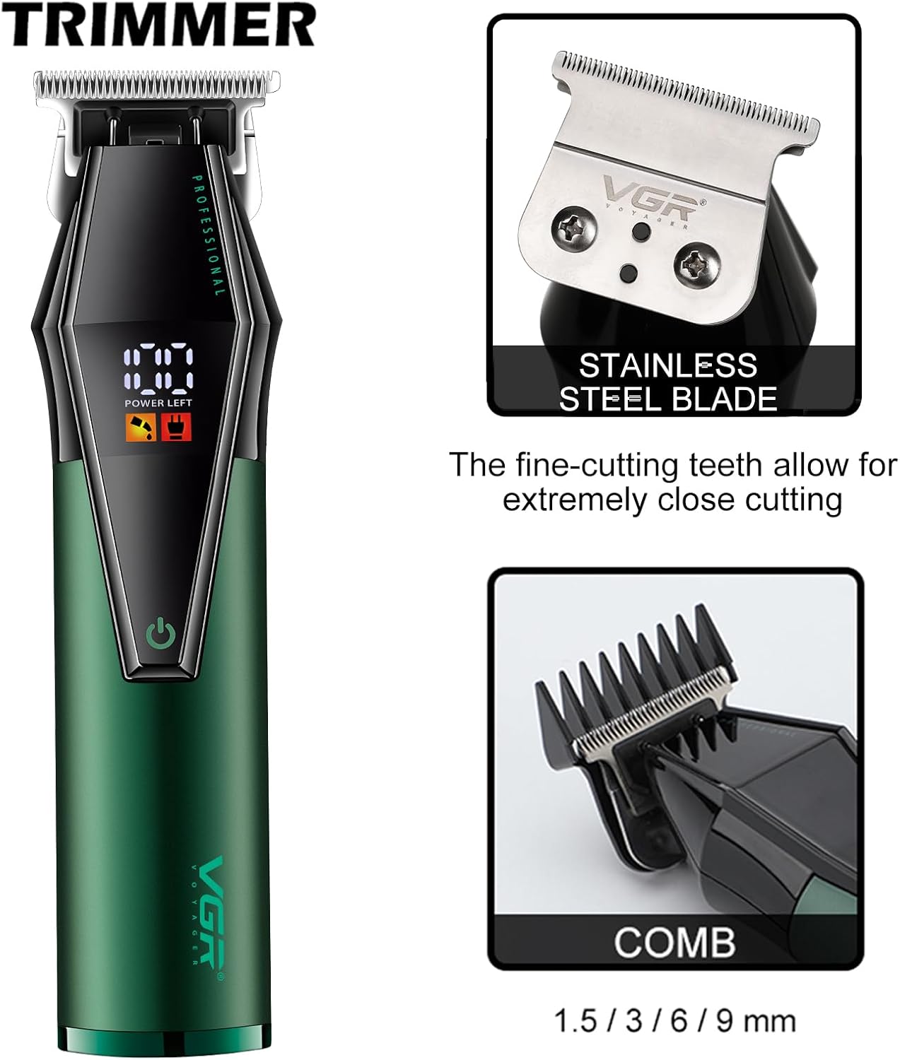 Set Profesional VGR për Prerje Flokësh – Makinë + Trimmer, Motor i Fuqishëm, Bateri e Gjatë, Ekran LED
