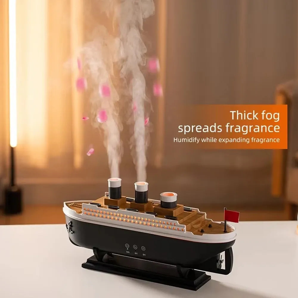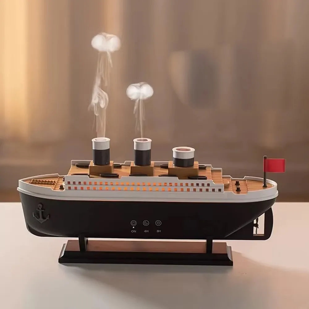 Kjo pajisje unike Titanic Ship Air Humidifier është një difuzer aromaterapie 250ml në formën e anijes ikonike Titanic, që kombinon dizajnin dekorativ me funksionin praktik. E veçantë për efektin e saj “jellyfish spray”, krijon një atmosferë relaksuese me avull të butë dhe drita ambientale shumëngjyrëshe. Mund të përdoret me vajra esencialë, duke shtuar vetëm 1-2 pika për një aromë të këndshme në ambient. Përfshin telekomandë pa kabllo për ndërrimin e funksioneve si fikje/ndezje, kohëmatje dhe ndriçim. Ka një hapje të madhe për mbushje të lehtë me ujë dhe pastrim, ndërsa pamja kreative e anijes e bën perfekte për çdo dhomë moderne apo dhuratë të veçantë.