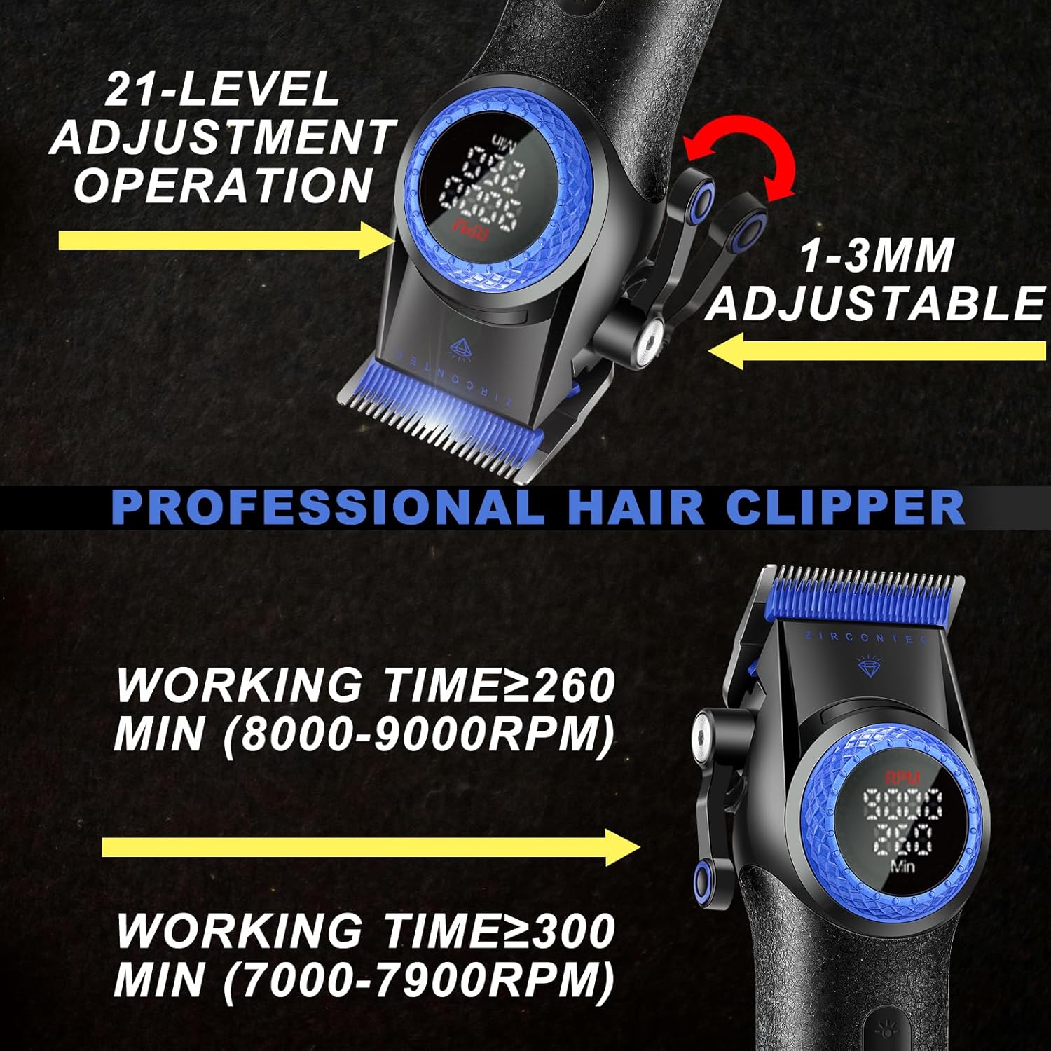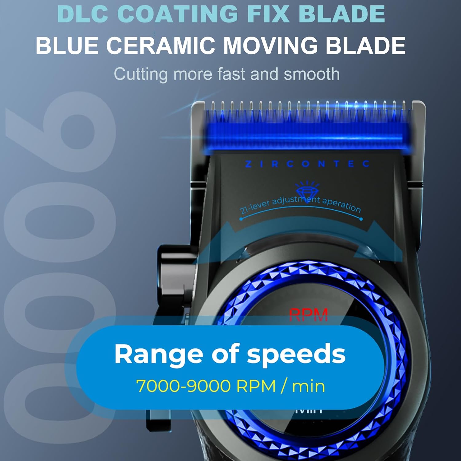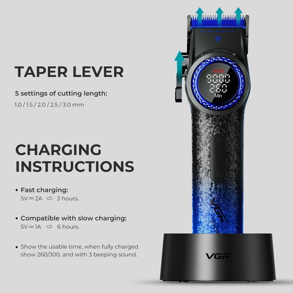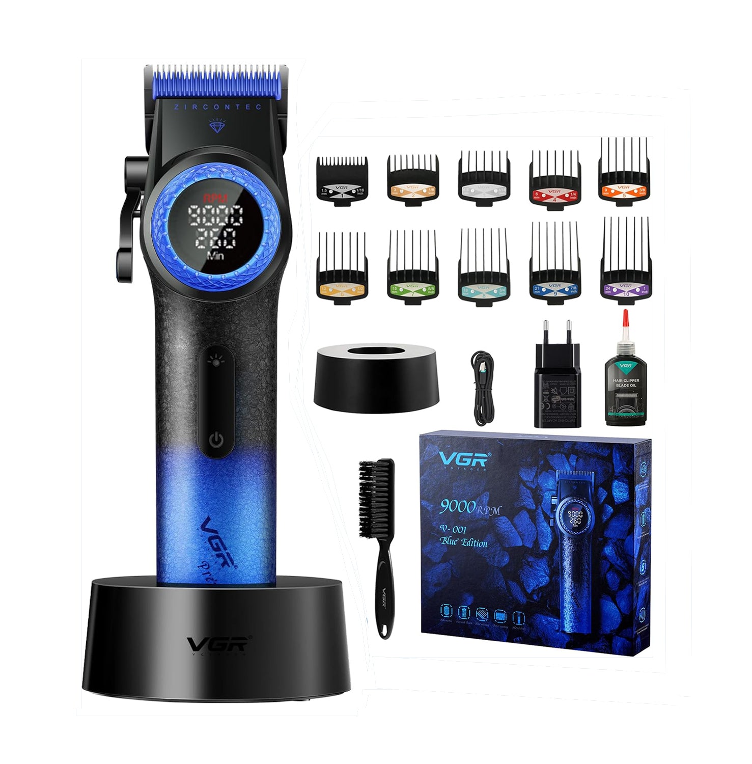 VGR V-001 Blue Premium - Makinë Profesionale për Prerje Flokësh | Teh Çeliku, 9000RPM, 21 Shpejtësi, LED & Bateri 4600mAh