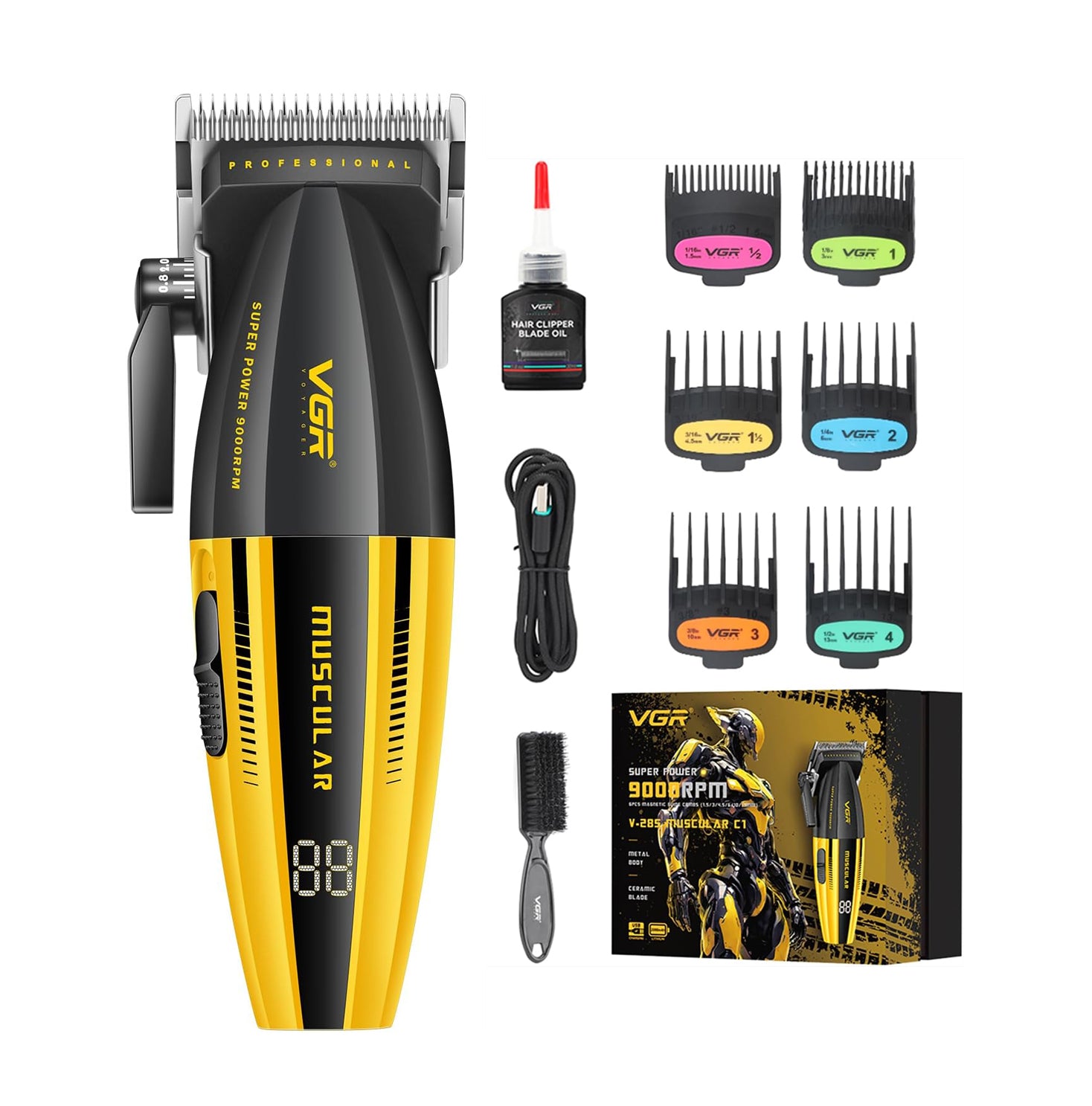 VGR V-285 – Kliperi Profesional 9000RPM për Meshkuj, Dizajn i Lehtë & Pa Kabëll me Ekran LED dhe 6 Krehera Magnetikë