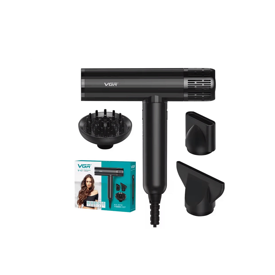 VGR V-427 Tharëse Profesionale Flokësh – 110,000 RPM High-Speed BLDC Motor, 1900W, 3 Shpejtësi & 4 Temperatura, Cool Shot, Aksesore Magnetikë