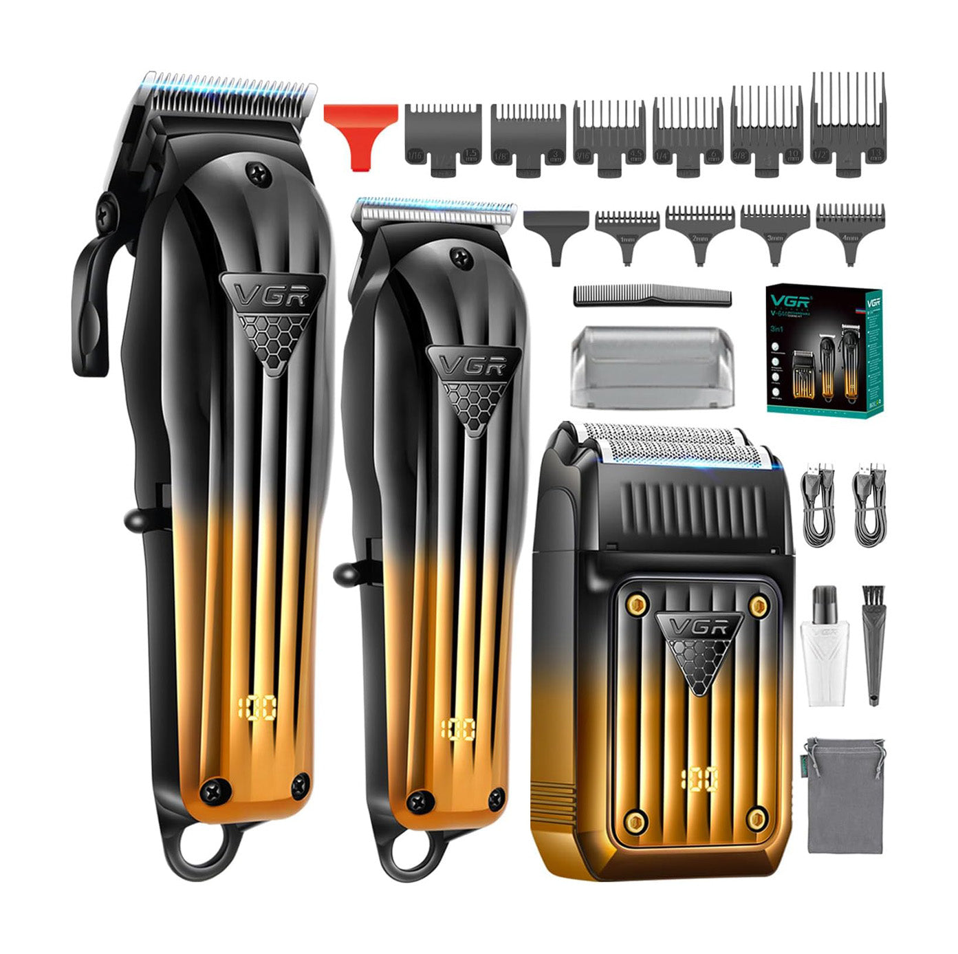 VGR V-644 – Set Profesional 3 në 1 për Meshkuj, Clipper, Trimmer, Shaver, Pa Kabllo, Ekran LED, Bateri Rikarikueshme
