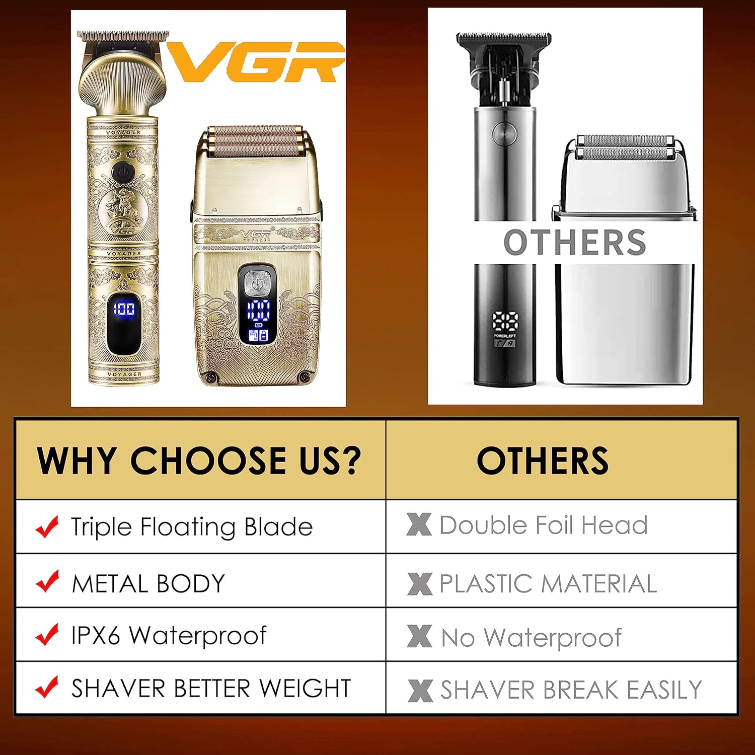VGR V-649 Set Profesional për Meshkuj – Trimmer Flokësh, Rroje Elektrike, Foil Shaver & T-Liner | Triple Blades, Pa Kabllo, Ngarkim i Shpejtë