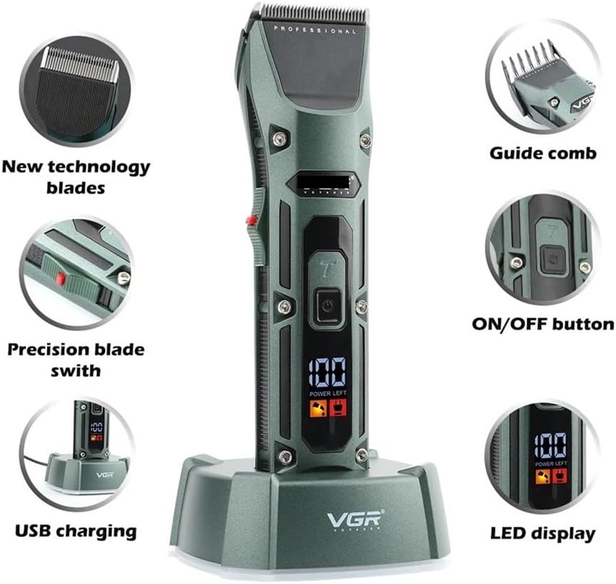 Zbuloni performancën profesionale me VGR V-696 Hair Clipper, një makinë rroje e projektuar për stilistët dhe berberët që kërkojnë saktësi, fuqi dhe qëndrueshmëri.