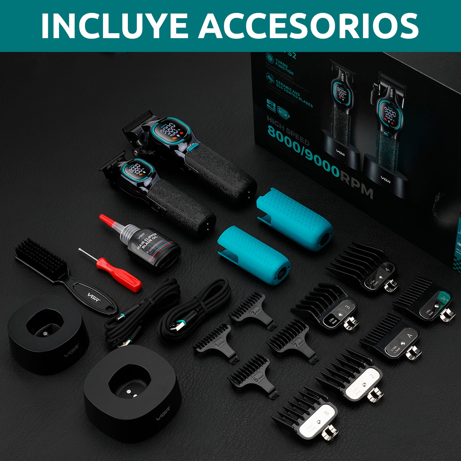 VGR V-886 S2 – Set Profesional Clipper + Trimmer 9000RPM Turbo me Tehe Ceramike & DLC, Bateri Afatgjatë
