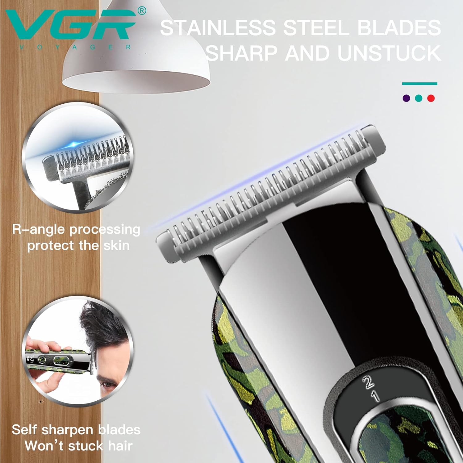 VGR V-271 – Trimmer për meshkuj me dizajn ushtarak, tehë çeliku dhe bateri 150 min