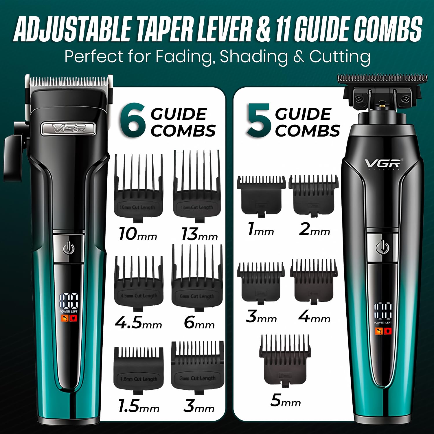 VGR V-694 Set Profesional 3-në-1 – Makineri Rroje, Trimmer & Shaver me Teh Keramike dhe Çelik Karboni, Autonomi e Gjatë, Ekran LED, Karikim USB
